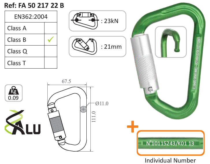 Aluminium Quarter Turn-locking Karabiner