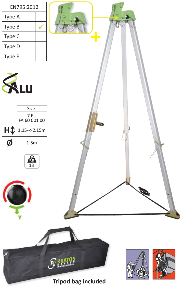 - Every Tripod is provided with an inbuilt fixture for attaching our winches FA 60 003 00 (20m) / FA 60 023 00 (30m).