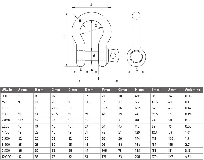 Bow shackles with screw collar pin Green Pin