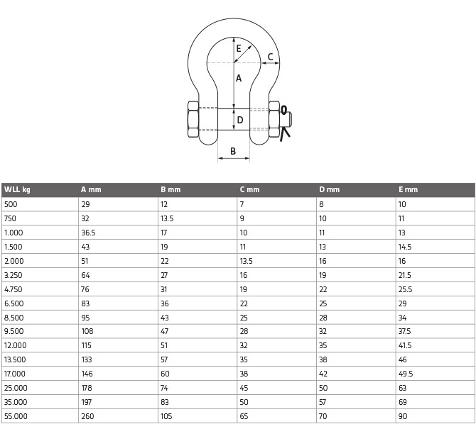 Bow shackles with safety bolt