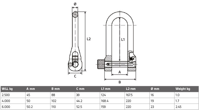 This way, in contrast to other shackles, you prevent the loss of bolts and nuts.
