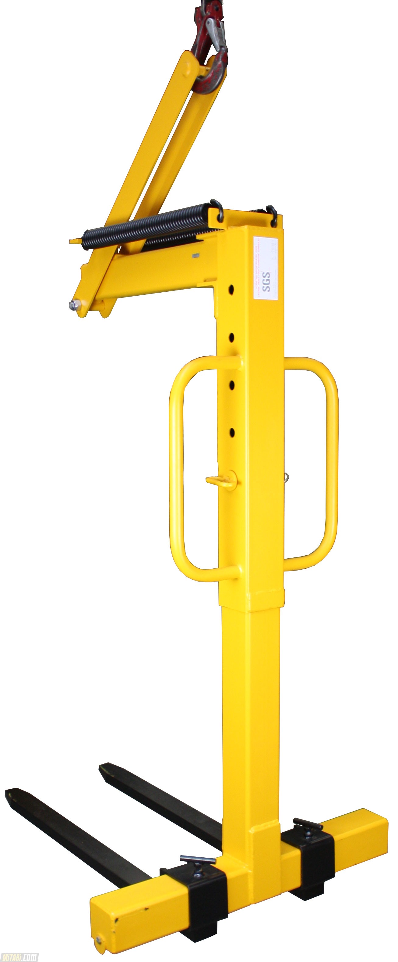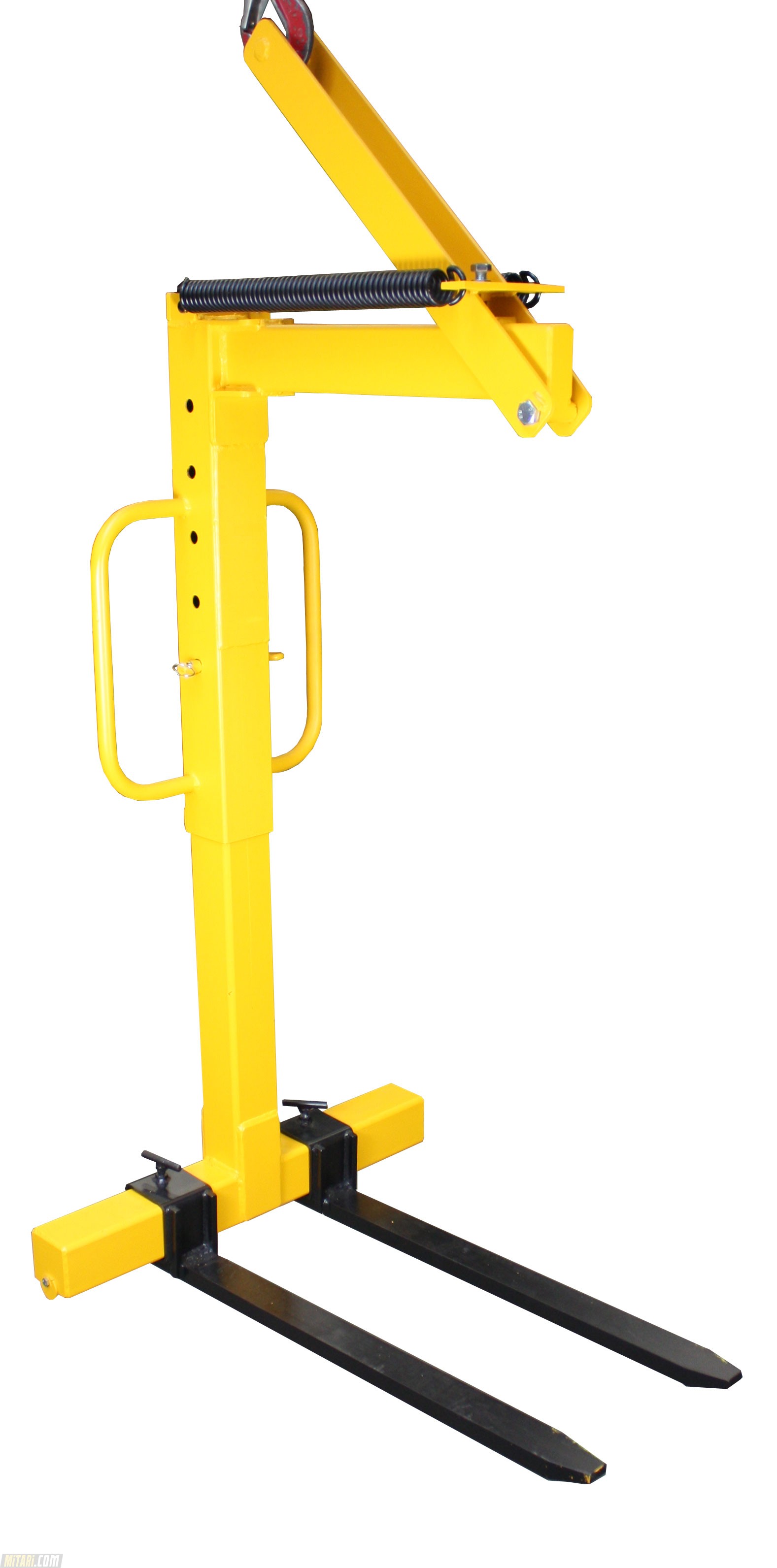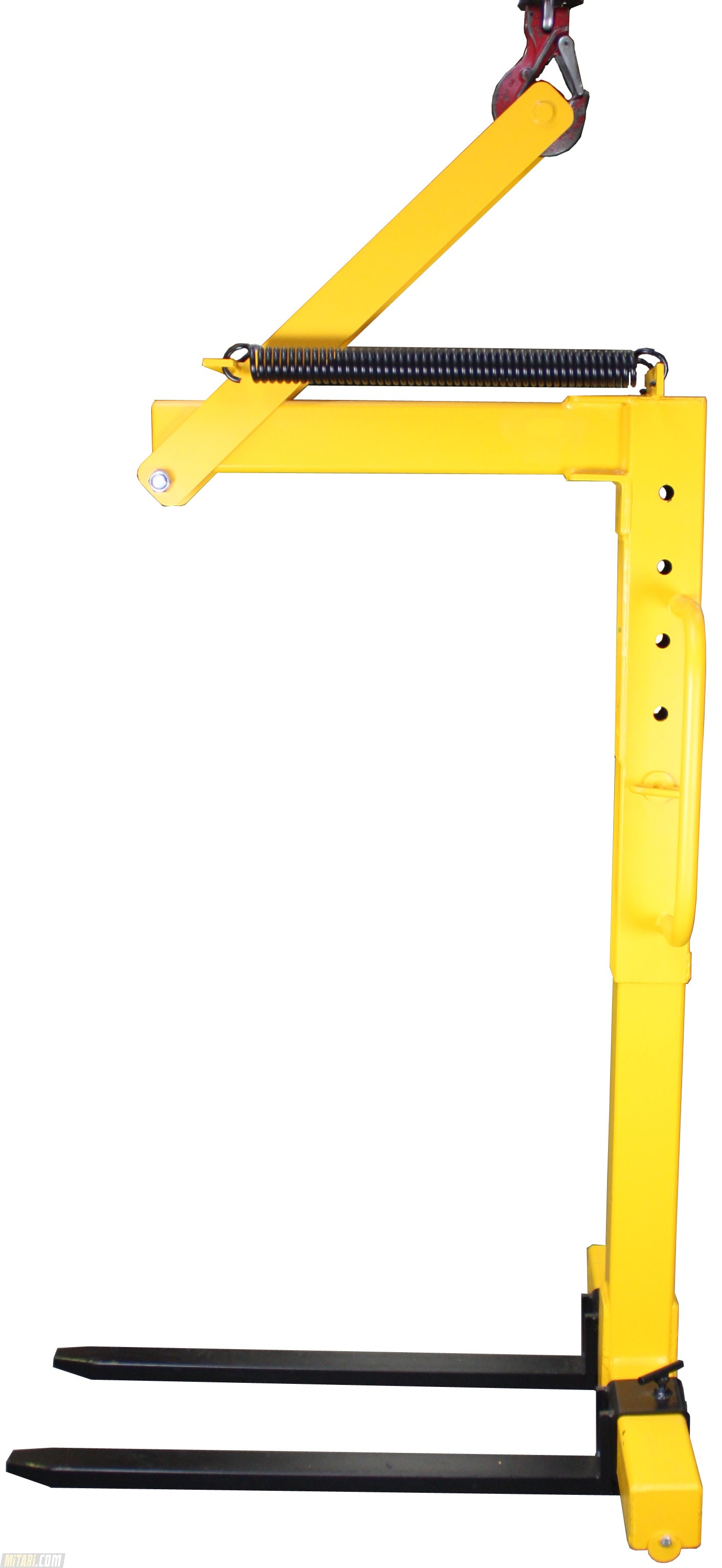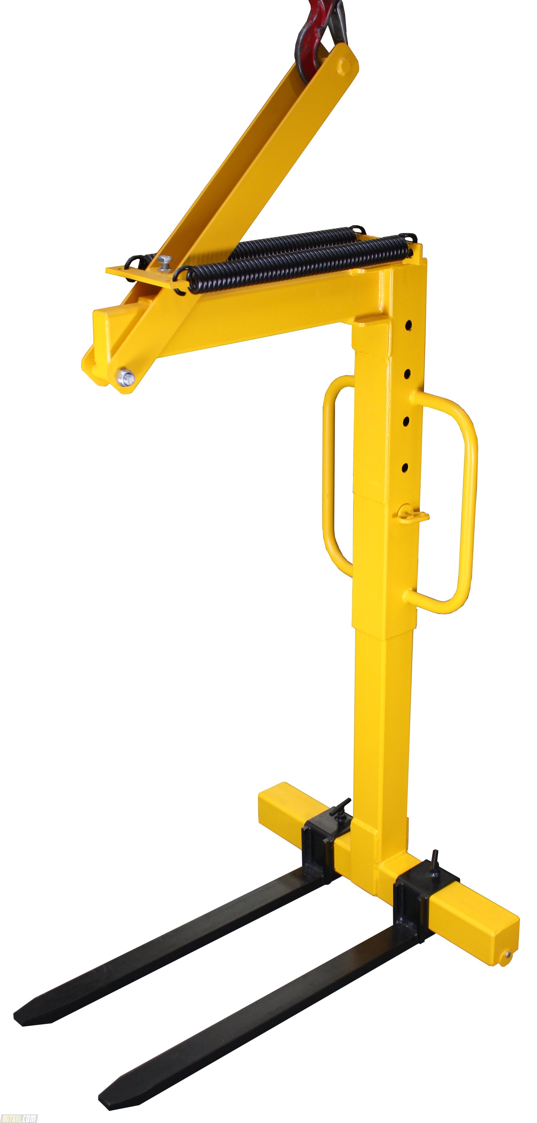 Easy release and lockable for any height adjustments. The centre case of the Crane Fork height can be adjusted by 2 high grade stainless steel pin for a secure lifting suspension Two highly grade forks which can also be adjusted in the width for larger objects. The automatic balancer is excellent for hoisting cranes. The Crane fork comes only in the color yellow/black. (see picture)