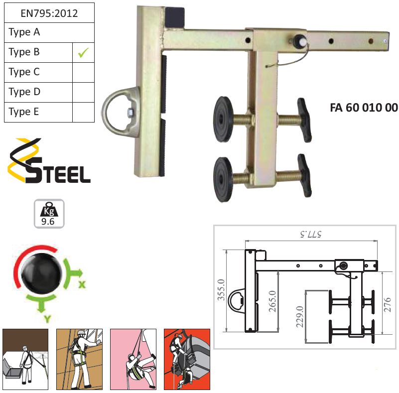 - Can be installed on parapets with dimensions from 60 to 360 mm
