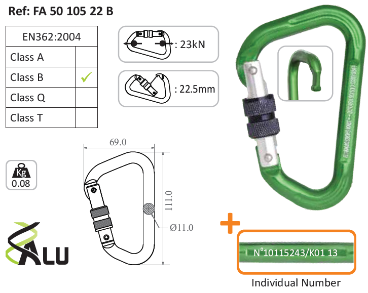 Aluminum karabiner with a screw lock