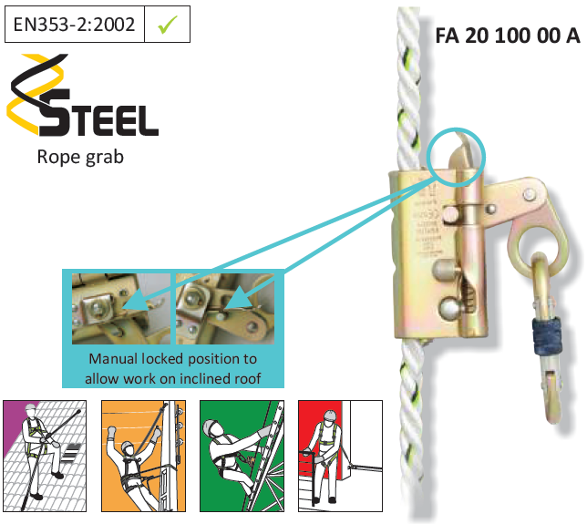 - FA 20 100 00A: Steel karabiner FA 50 101 17 as an attachment element.