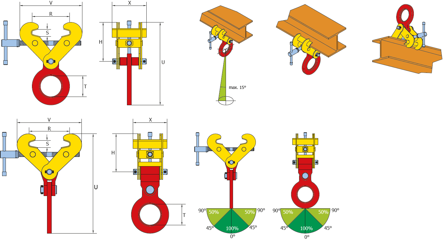 • For horizontal lifting and transportation of steel (H) beams, profiles and structures