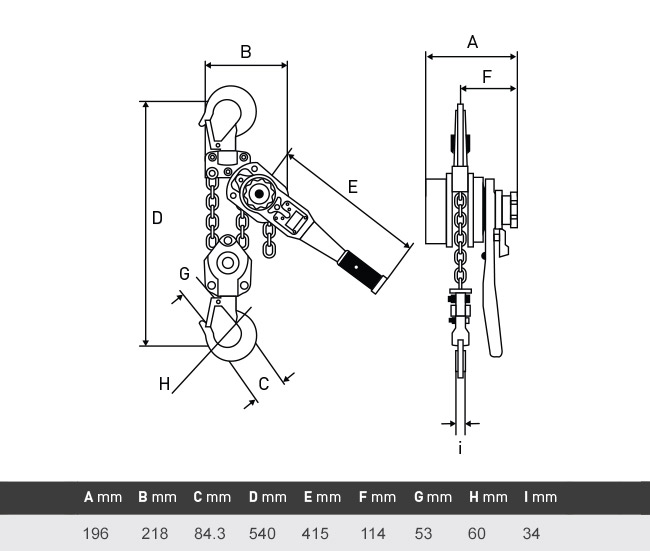 Our lever hoists are qualitatively the best that are currently for sale on the European market. The ratchet hoist has a very short lever. The required power (up to 31 kg) minimum stays by a sophisticated transmission. Lever Hoist with a long lever control masking qualitative lesser ratchet hoist which do the work instead of the ratchet hoist. Furthermore, the ratchet hoist has galvanized chain, sturdy molded valves (instead of a tin cover). All axles are mounted, metal control knob (instead of plastic). Swiveling lower hook- and top hook. An extremely solid ratchet hoist years professional hoisting fun. We deliver these lever hoists with the desired chain length from stock (default is 1.5 m.).