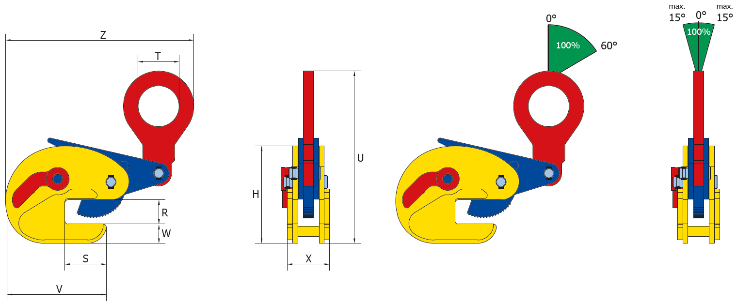 - Always equipped with a safety mechanism, ensuring the clamp does not slip when lifting force is applied and when load is being lowered