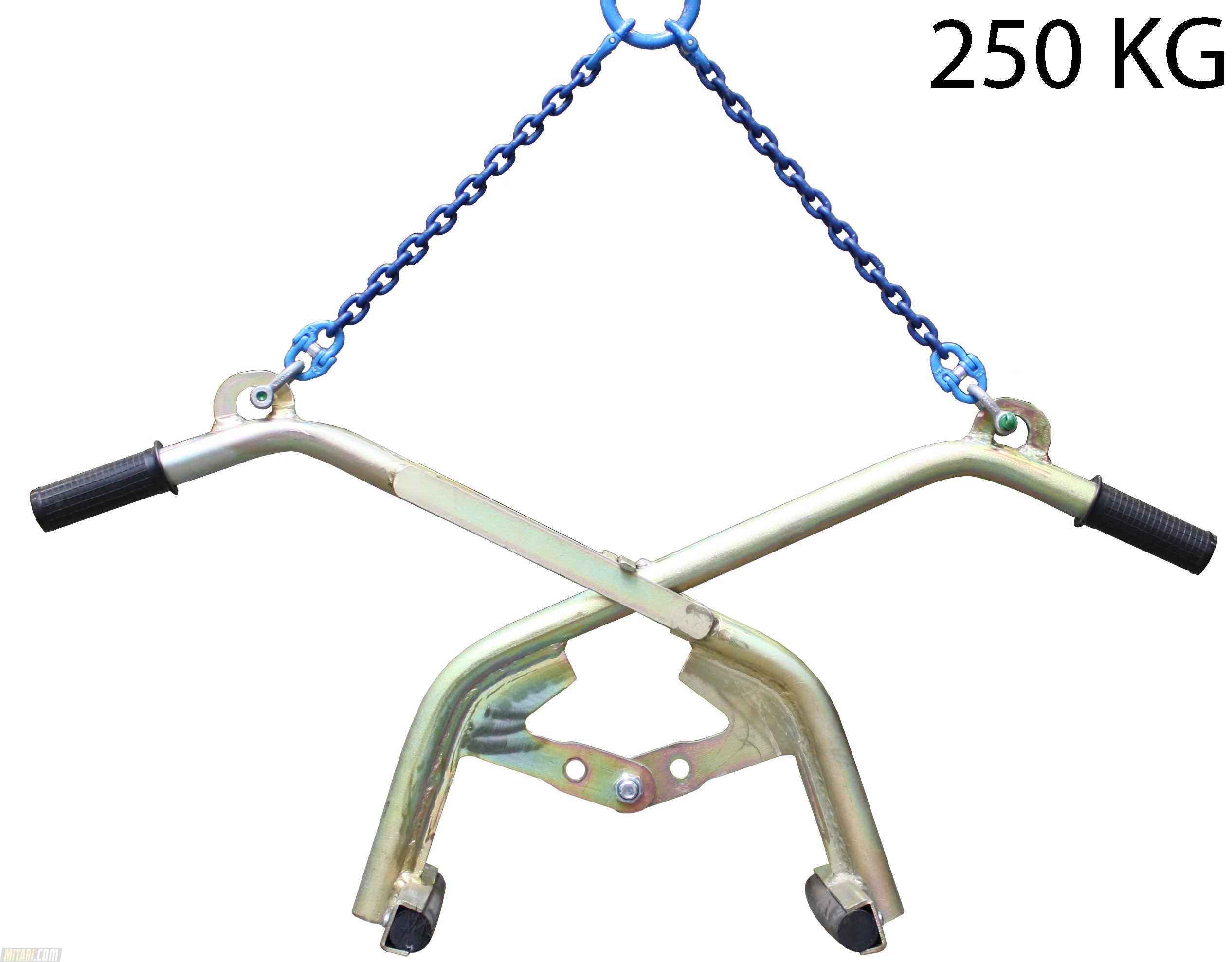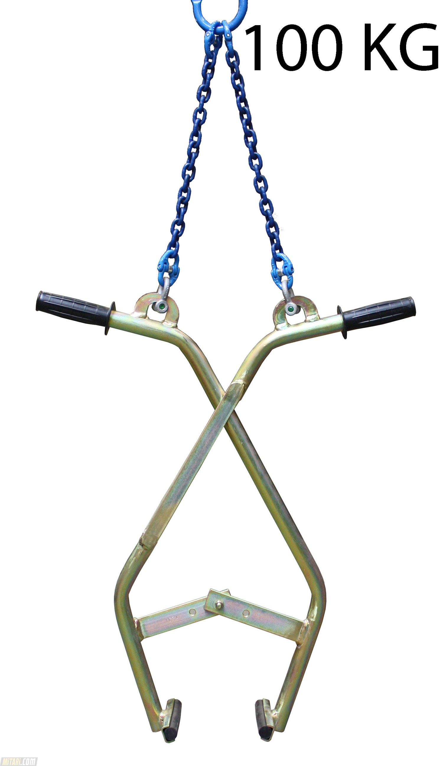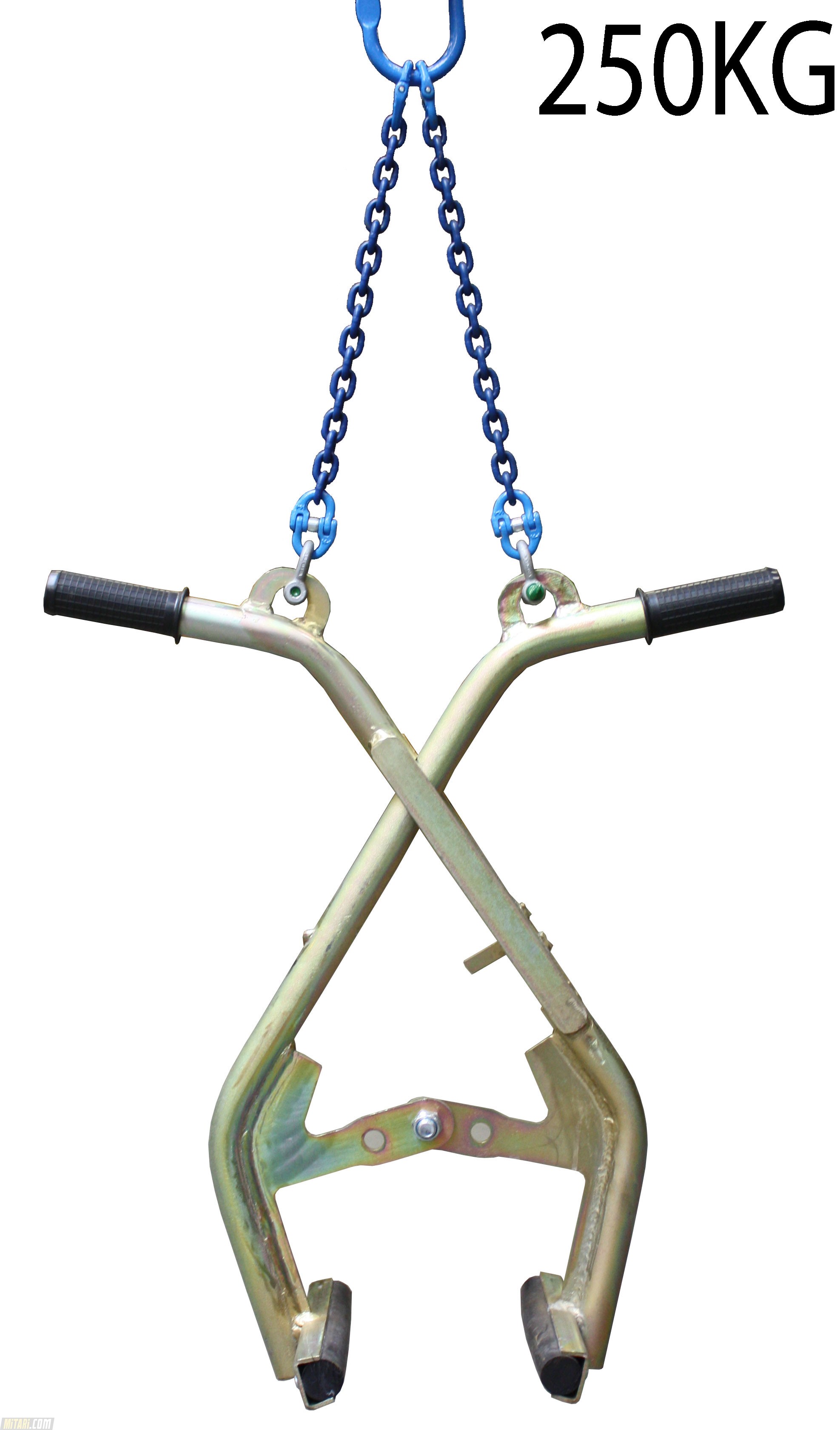 Strap wrench designed to be used either manually or with the crane. The grabber has steel points that are easy to replace. It is lightweight, has an excellent grip on concrete and a durable electrolytic coating.