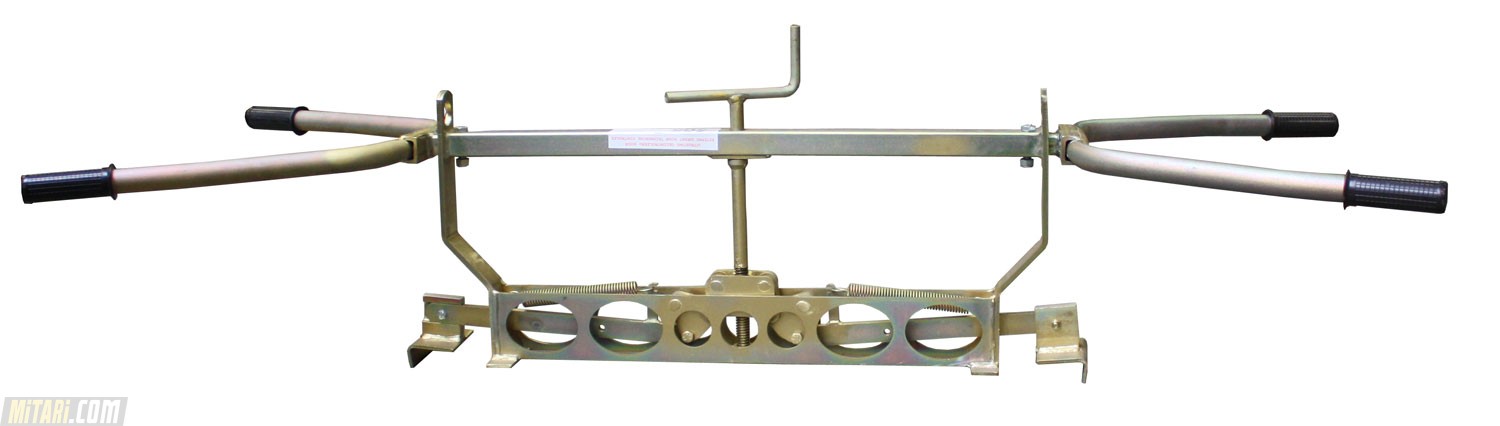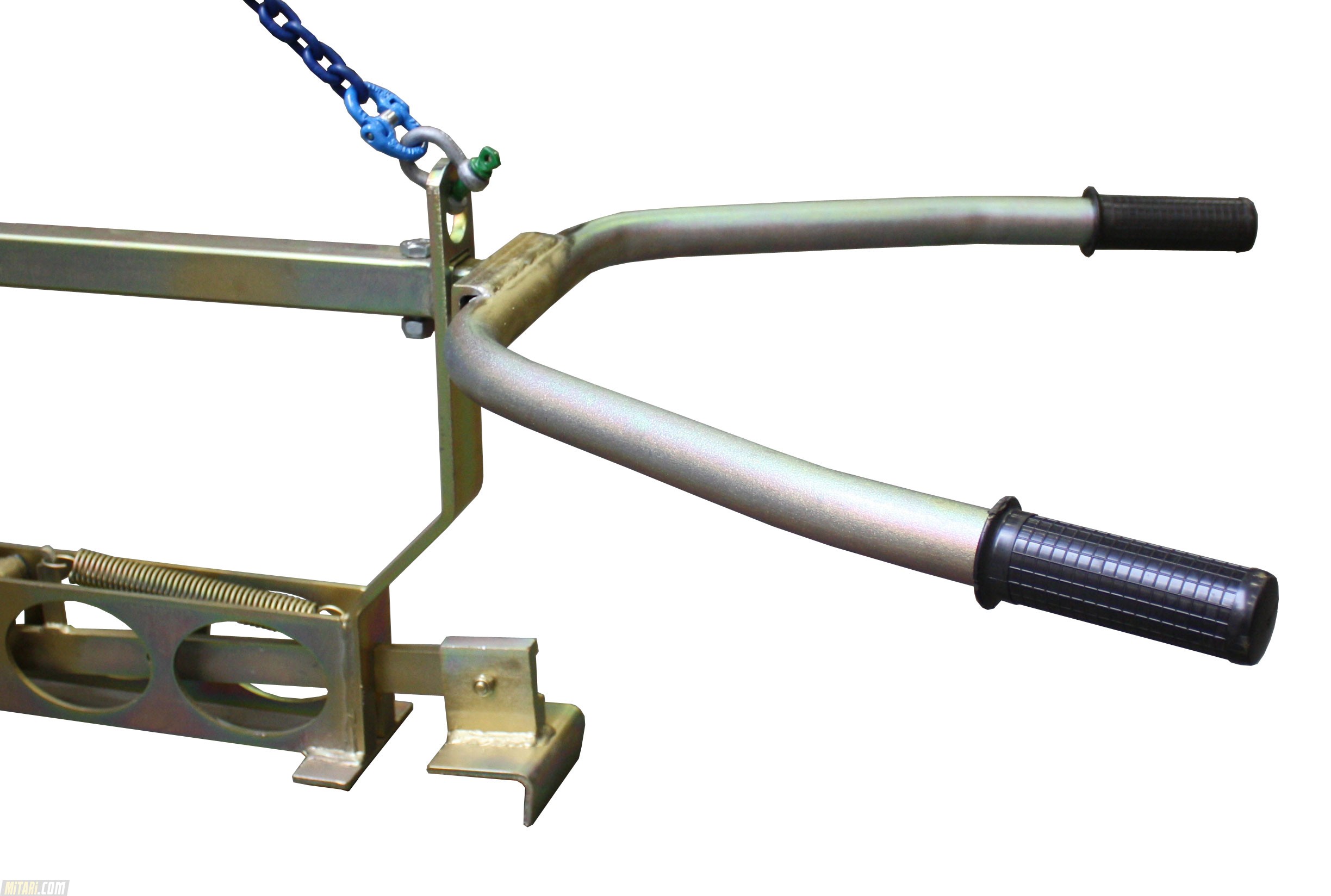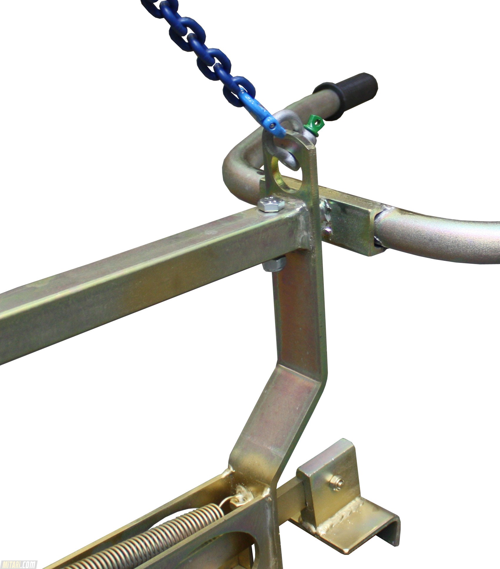 This is the most efficient tool for quickly placing coping stones or edging. Coping/ curb stones can be placed without touching the string line because the stone is lifted lengthwise. The grabber is equipped with a spindle, to prevent the clamp from opening while lifting. The clamping brackets can be removed and adjusted into different positions, to allow varying coping/ curb stone sizes to be lifted from 0.5m to 1m. Other types of clamping brackets are available, such as brackets with a recess for straps with a lip. The carrying handles can be easily removed to prevent them from getting in the way when the grabber is used in combination with the crane. It is supplied with a durable electrolytic coating.