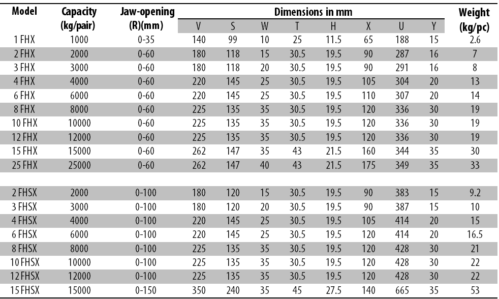 FHX | FHSX | lightweight heavy duty clamp for horizontal lifting | 1.000 - 15.000 kg