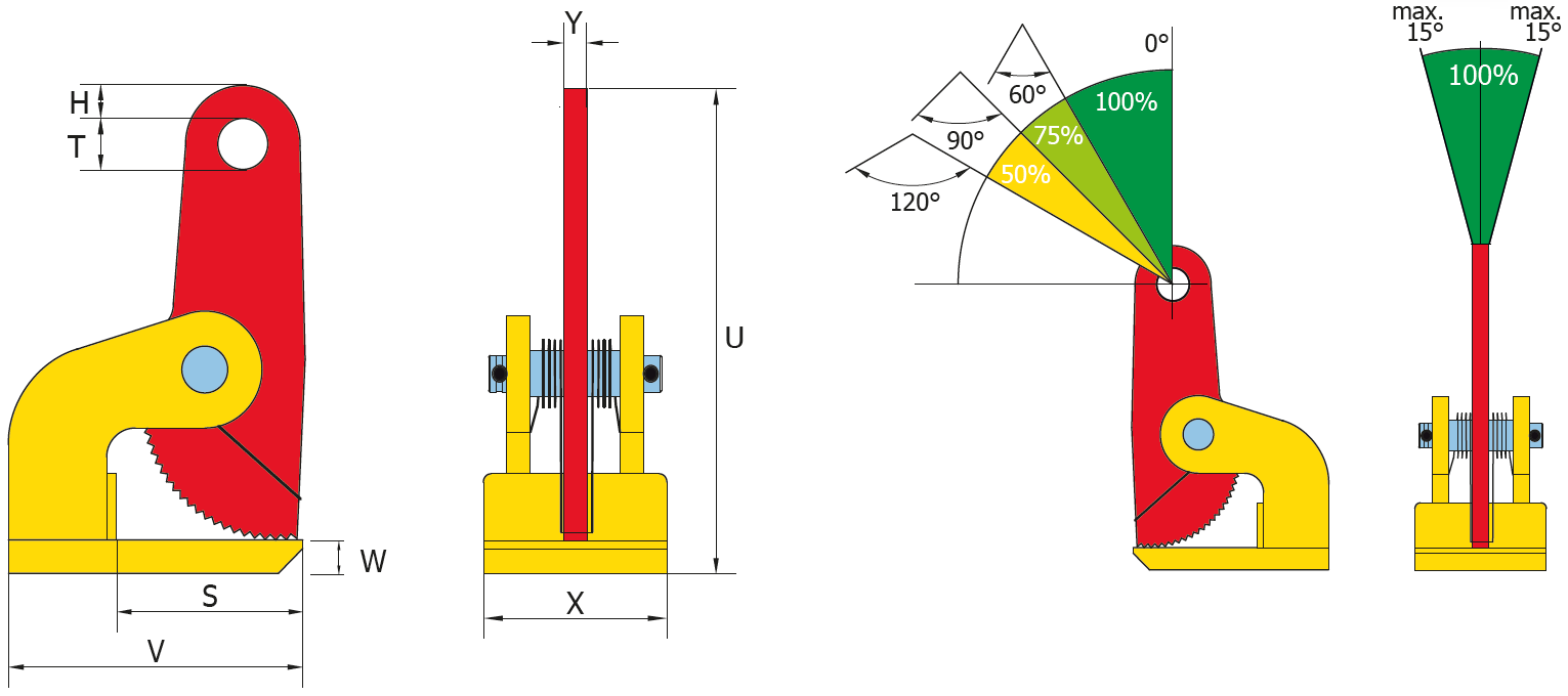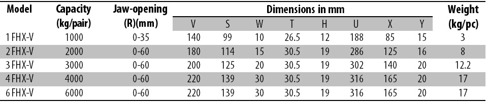 FHX-V | Lightweight heavy duty clamp for horizontal lifting with torsion spring | 1.000 - 6.000 kg