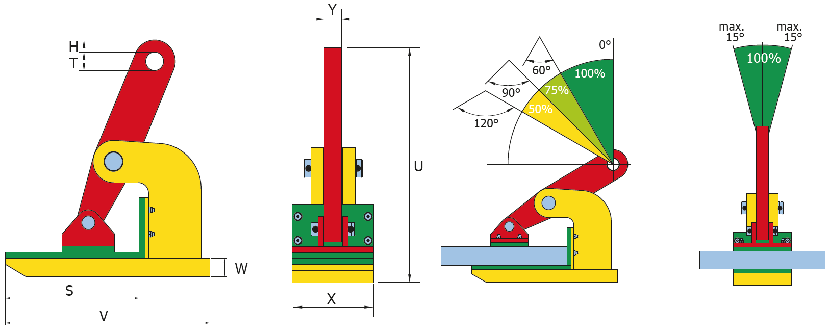 - Perfect for lifting materials such as (stainless) steel, aluminum, nature stone, composite, painted materials, wood, glass, plastic, etc .