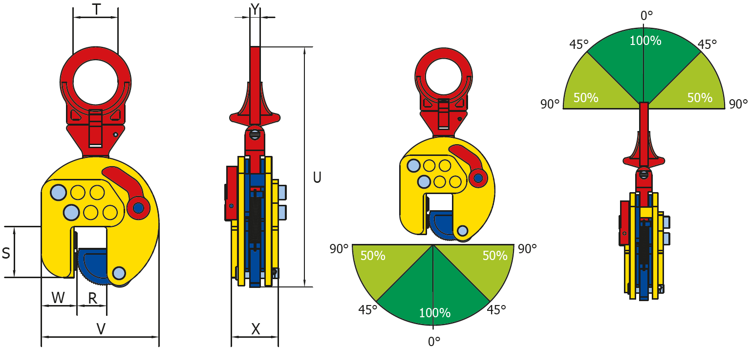 Note a lower load capacity when lifting in an angle higher than 45 degrees . Please check the WLL reduction.