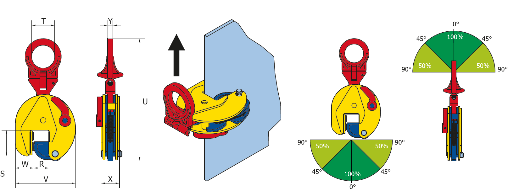 - Always equipped with a safety mechanism, ensuring the clamp does not slip when lifting force is applied VertiCal lifting and when load is being lowered